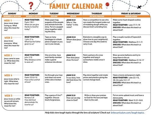 Week 1: What We're Learning! Hey parents! Take a look at what we're learning this weekend as we move into a NEW Series!Important Reminders:- March 25th we will have NO midweek services as it is spring break - March 28th we will have a family style service. K-5th will join adults for the 10 AM service. Preschool classes will still be available. The Prodigal Son (Luke 15:11-24)Brite Idea: Jesus nev...